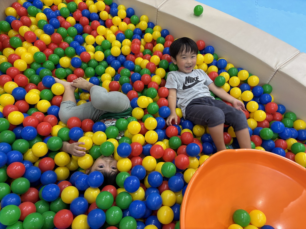 他の場所でも、ボールプールに潜り込んで遊んだり、BBQごっこをしたりとあちこち遊びつくしていました^^
