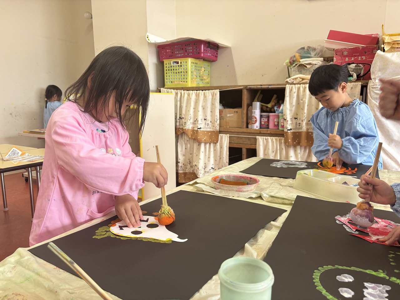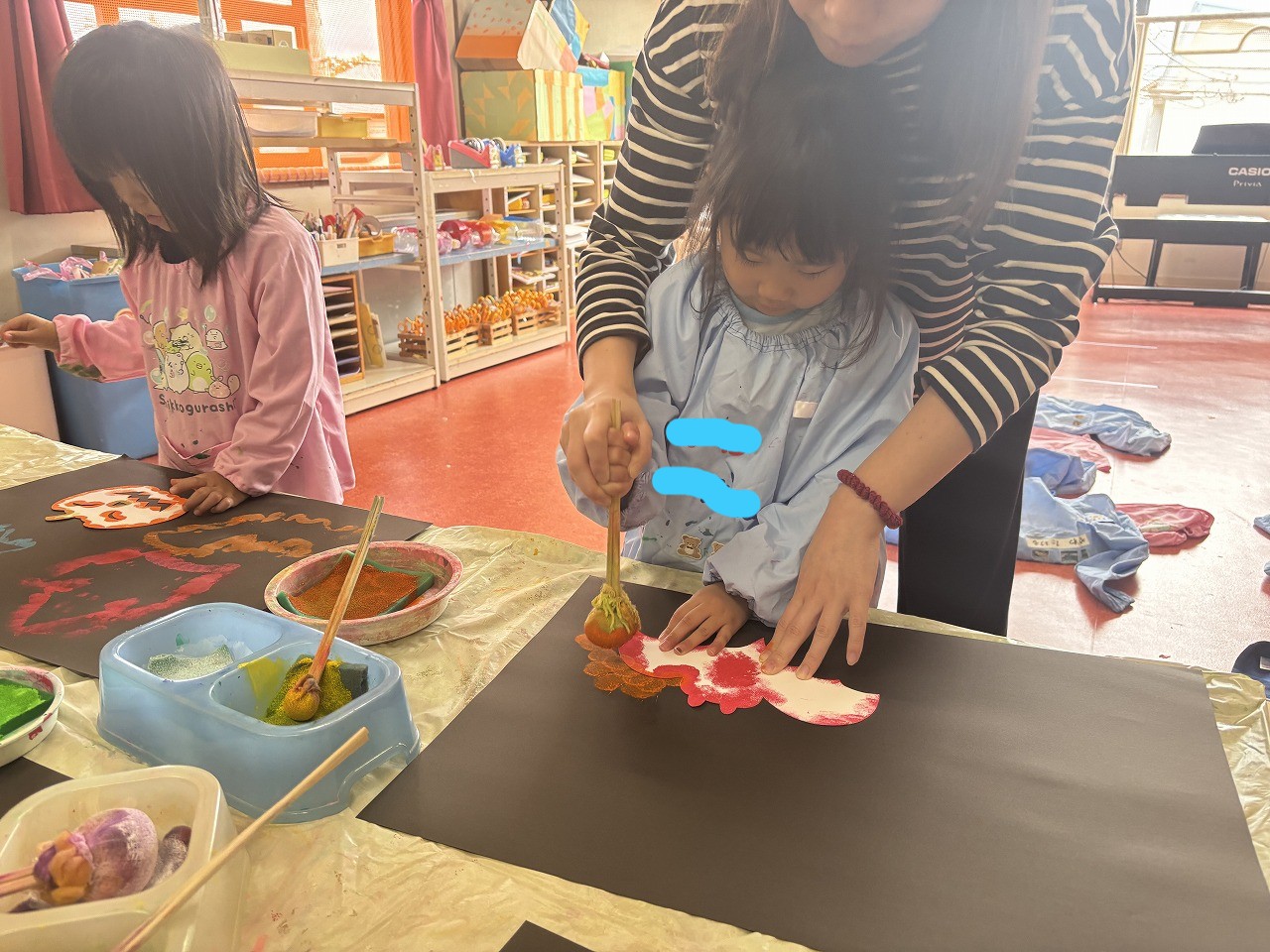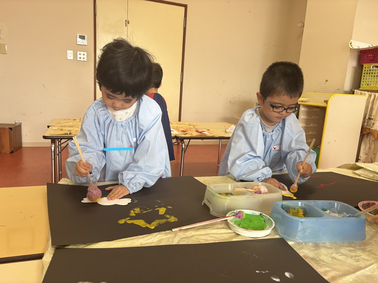 絵の具の付け具合・くるくると全体を優しくこする作業、どちらも丁寧にかつ楽しみながら取り組んでいました!