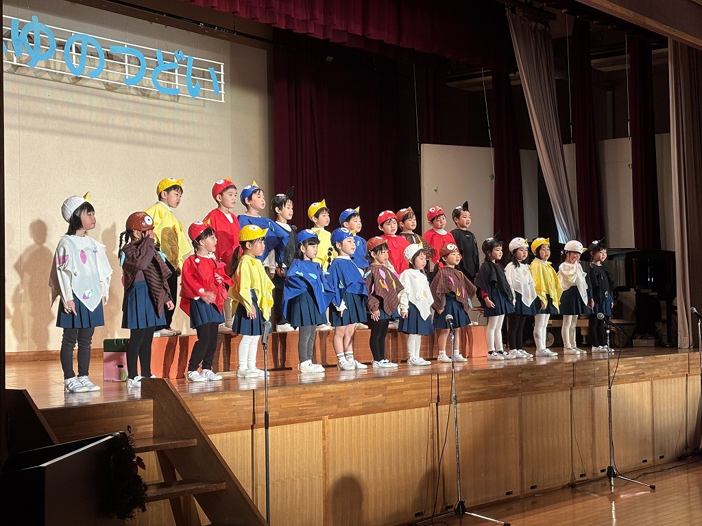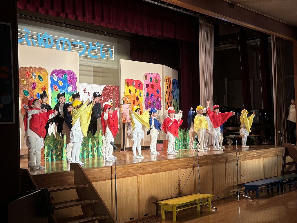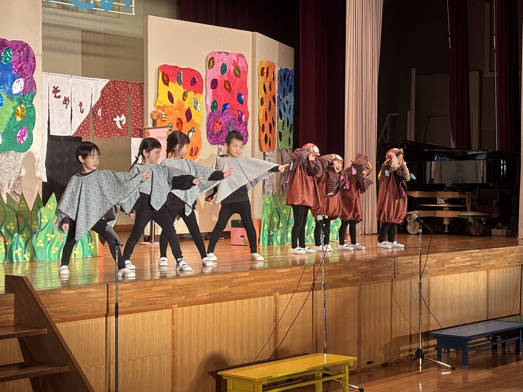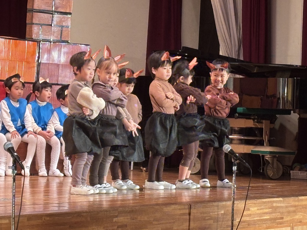 冬の集い⛄ Posted on 2026年1月8日 by kunori00 12月14日(日) 冬の集いでは子どもたちに沢山の応援とあたたかい拍手をありがとうございました。 オペレッタのお話を楽しんだり、絵画活動など様々な分野に広めて活動するなど、当日の発表だけでなく、それまでの過程も大切にして取り組んできました。 当日はたくさんのお客さんの前で緊張したと思いますが、みんなよく頑張ったなと思います😊 発表会が終わった後も、他のクラスのオペレッタを演じてみるなど、クラスの垣根を越えて、冬の集いの余韻を楽しんだところです😊
