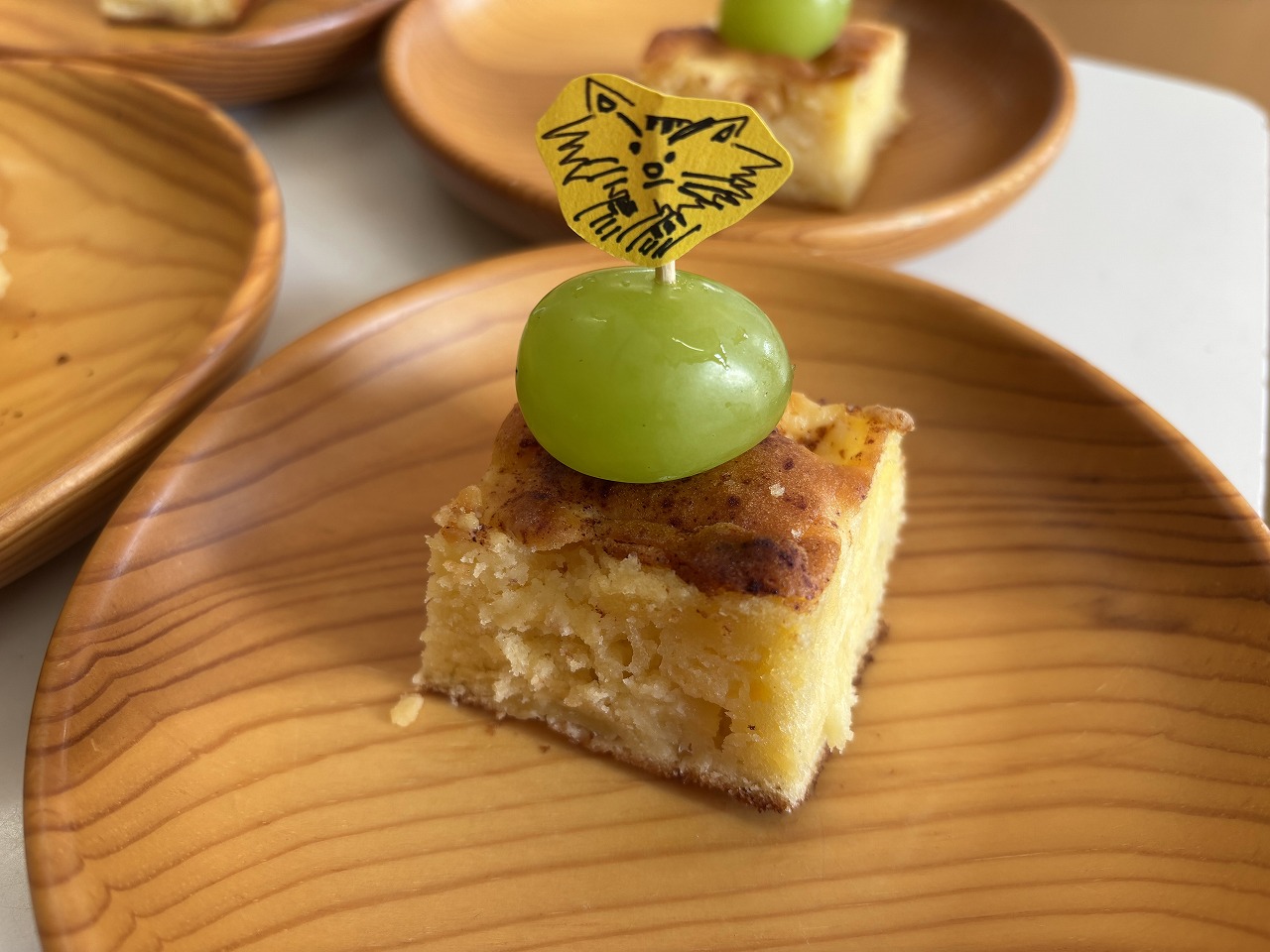 ちびくろさんぼに登場するトラたちは、物語の最後に、木の周りをぐるぐる追いかけまわって、溶けてバターになってしまいます。その、トラのバターが入ったりんごケーキが今回のおやつでした🐯